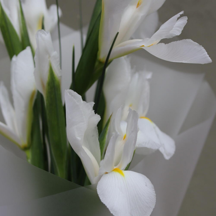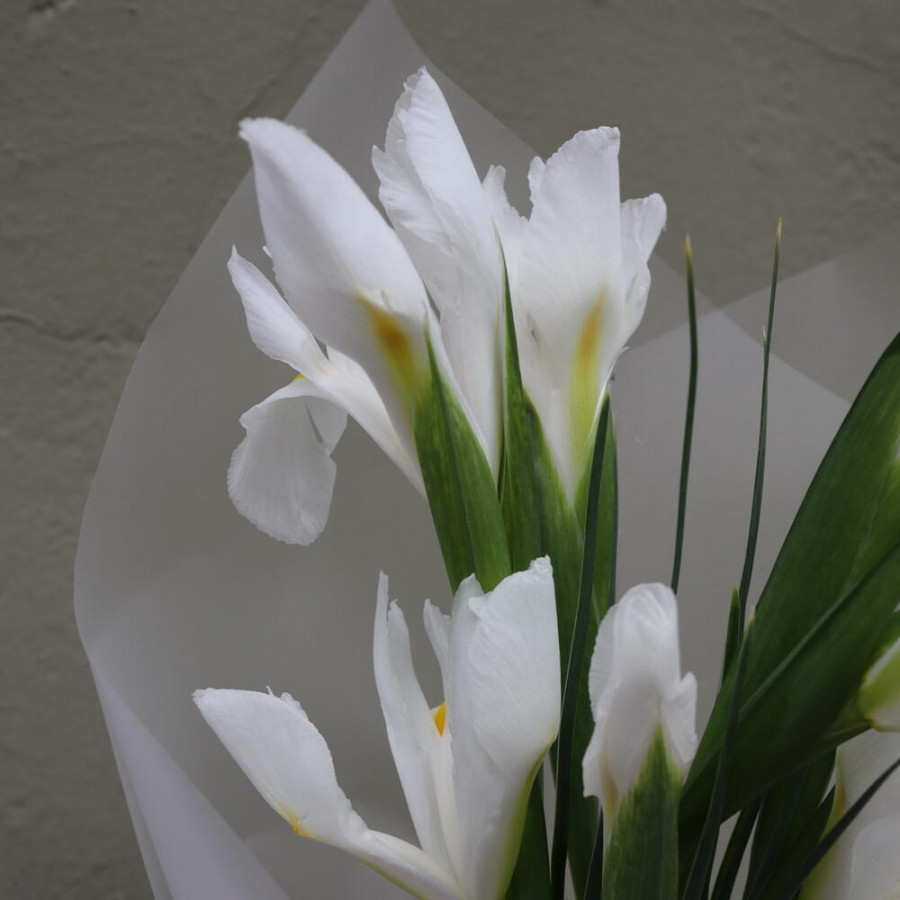 Букет 15 белых ирисов в стильной упаковке фото 3